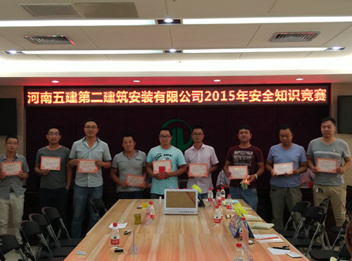 公司于7月7日在中樂百花大廈9樓組織開展了以一線安全管理員為主的安全生產知識競賽,參賽選手達30人。公司對此次活動高度重視,工程管理部制定了《2015年安全生產知識競賽方案》,并編制了上百道結合安全生產一線的“安全生產知識競賽”題,此次競賽公司還加推了“2015年安全知識競賽微信平臺”, 開放“答題搶紅包”的活動,選手們可以推薦自己身邊的工友參加。該活動獲得了各項目部的高度贊譽,充分彰顯了公司“人人講安全,人人重安全”的理念。此次活動以每三位選手自由結合的形式,通過上下半場各隊的激烈角逐,最終篩選出冠亞季軍3支優(yōu)秀隊伍。