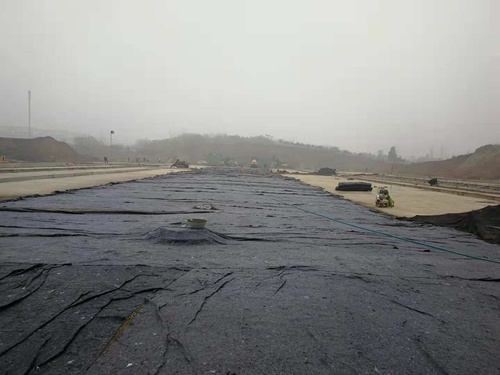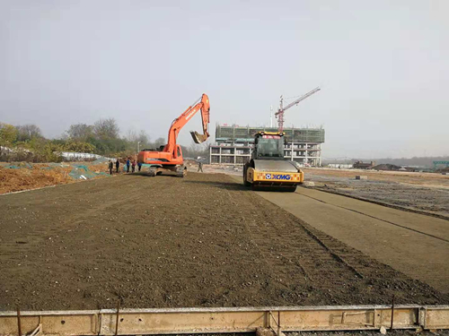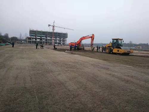 (2)停車場分層碾壓區(A區):第一層20cm厚水泥碎石穩定層攤鋪、碾壓施工全部完成。